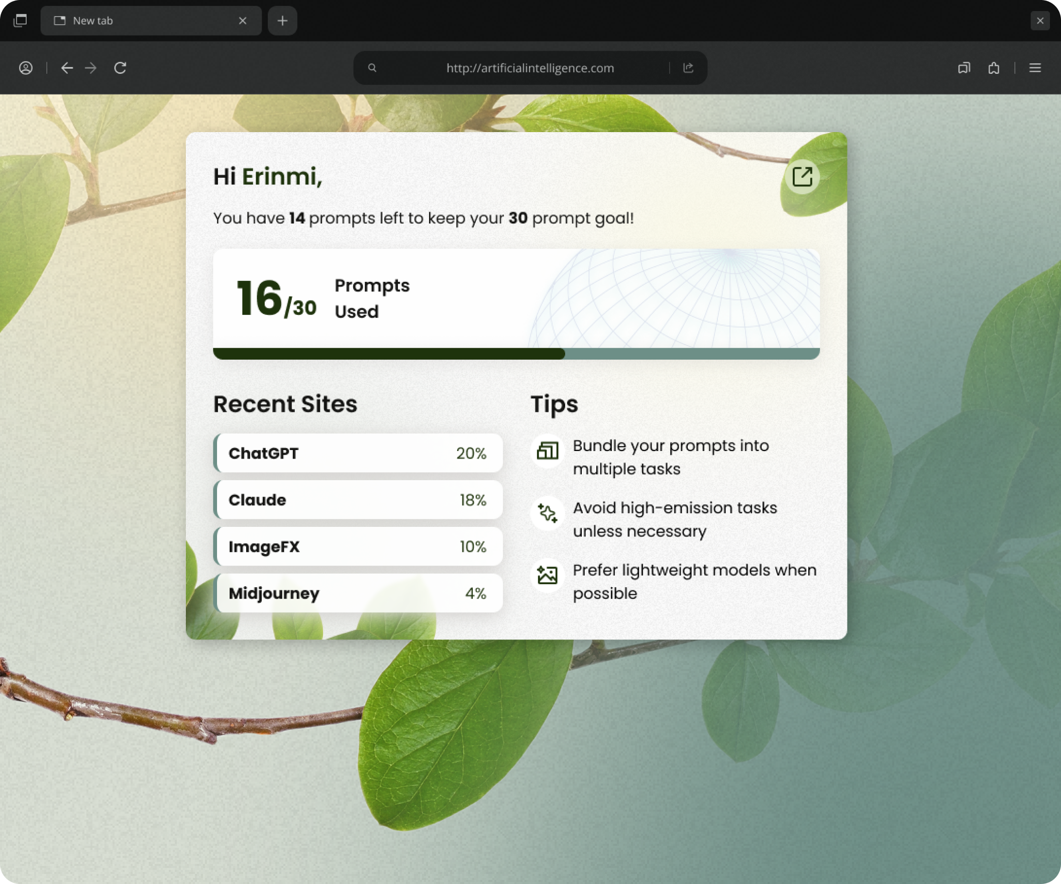Browser extension for environmental care.